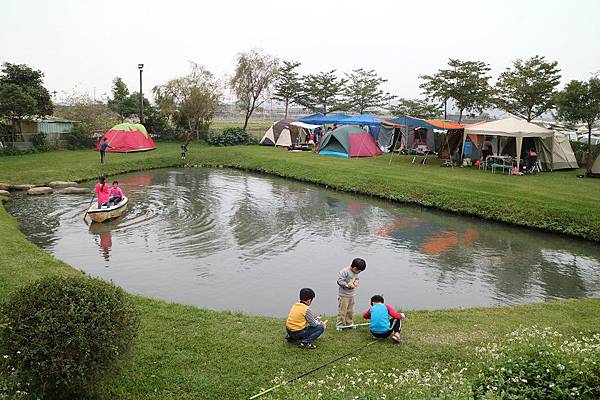 這划船遊戲超受歡迎的,小朋友都排隊等著玩。