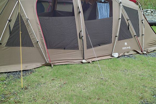 整頂帳蓬牢牢的釘在地上,免得散架。
