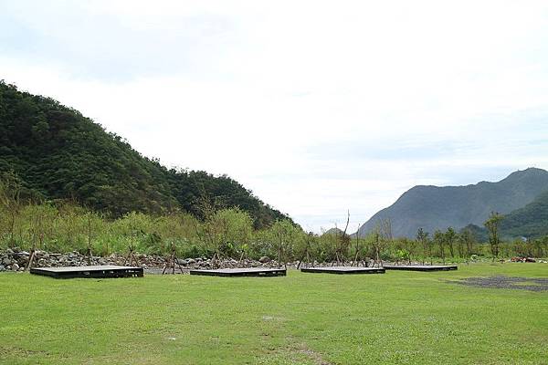 第一排的木棧板區,搭完帳後前面還留了一大塊的活動空間,