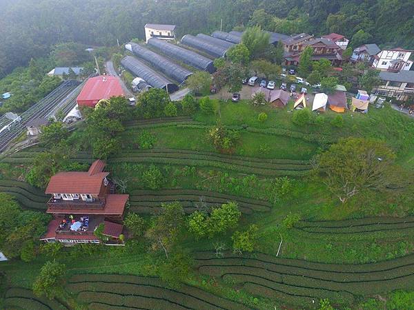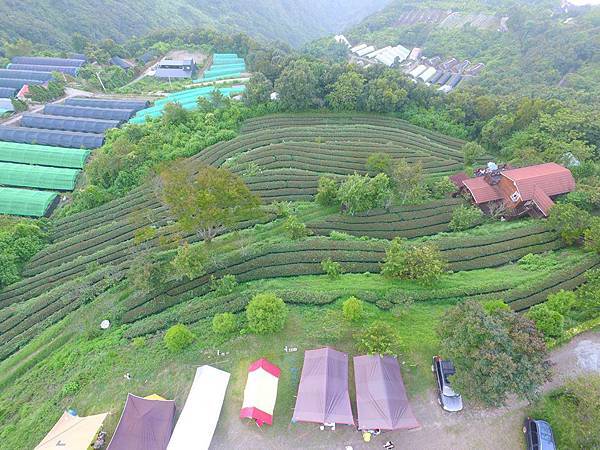 營地下方是梯田茶園。