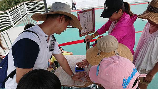 輪流蓋章中,一定要蓋章才可以再進入天空步道喔。