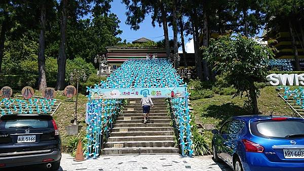 暑假也正好是清境風車節,樓梯上佈置了滿滿的風車。