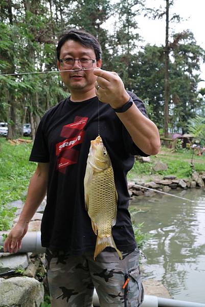 很久沒釣魚的老爺,吃完早餐後直衝釣魚池。