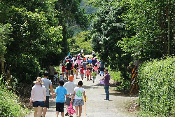 阿嘉走在最前方,阿嘉爸爸走在最後方。