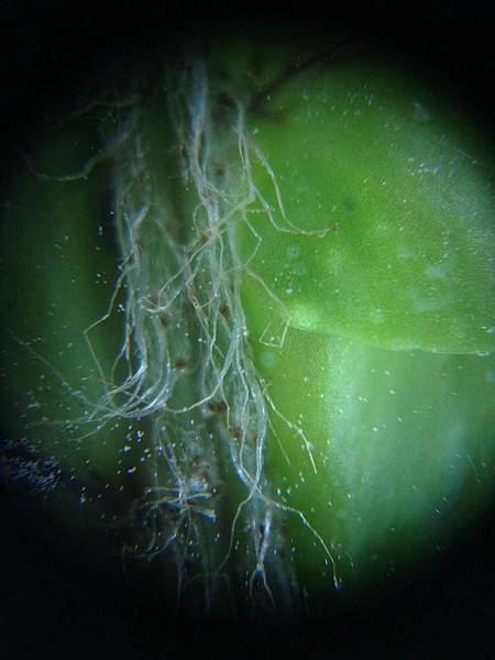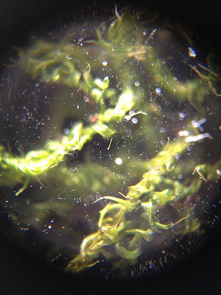 老爺嚐試著要觀察蝌蚪,動來動去的活體很難對焦,只好放棄。