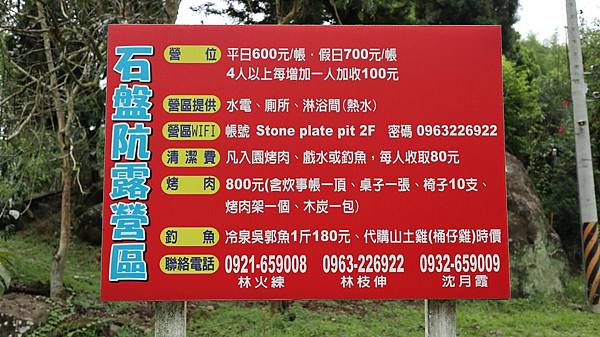 露營收費:碎石/水泥棧板700元,雨棚限4帳包區/3200元