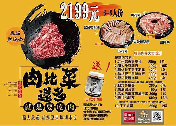 除了烤肉食材還有多種火鍋可選擇唷 五根烤肉網